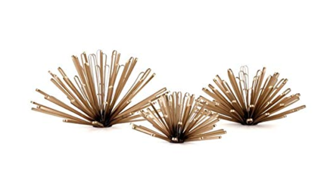 - Set of golden metal wall decor adds dimensional accent to walls