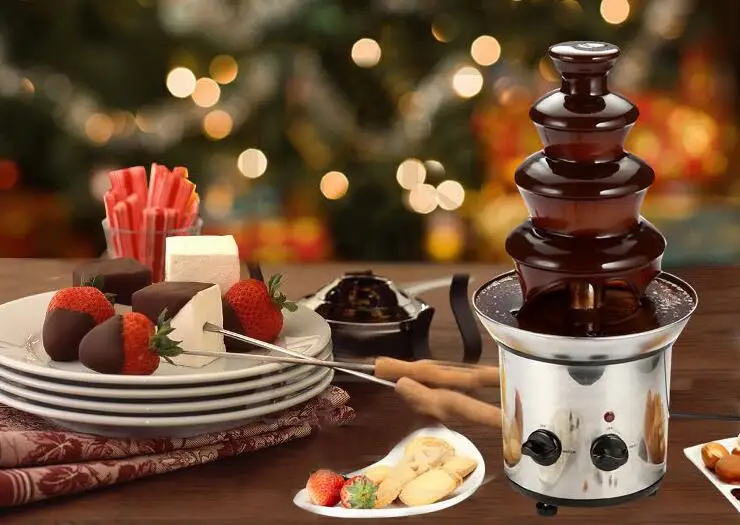 JUST FILL THE BASE WITH MELTED CHOCOLATE, TURN THE MOTOR ON & WATCH THE CHOCOLATE FLOW