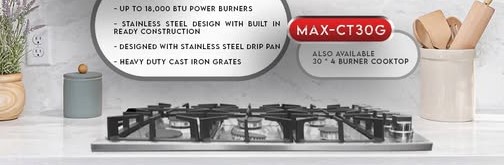 MAXSONIC 30" 4 BURNER GAS COOKTOP MAX-CT30G quantity